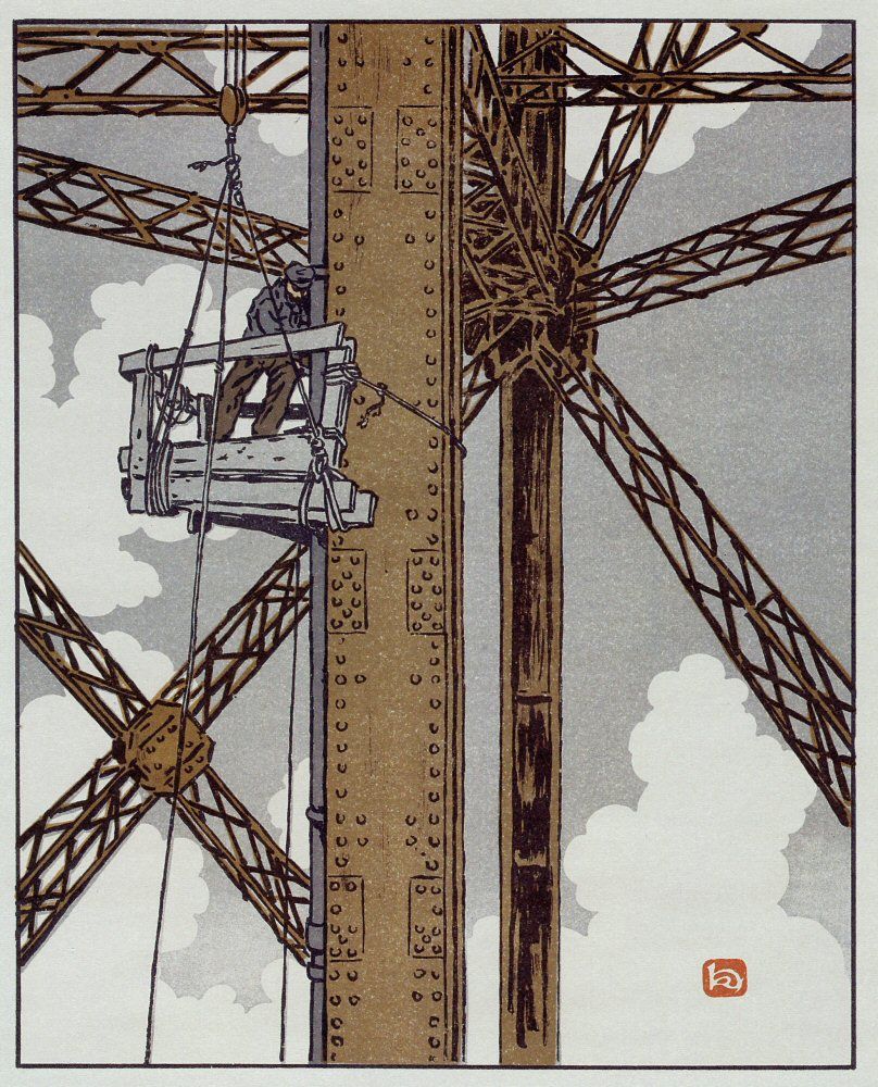 Henri Riviere grew up in the Pyrenees due to his family fleeing the Prussian army. He took an interest growing up in art, especially impressionism in the late 1870s. Then he became interested in Japan and Japanese art. He did shadow play shows at a café called Chat Noir and made a series of paintings called ‘36 views of the Eiffel Tower’ which were inspired by the Painting series ‘36 views of Mount Fuji’. Appearance wise his paintings are clearly borrowing from the style of the Japanese prints with their use of clear black lines and palettes which are lifted straight from other Japanese paintings, such as the greys, whites and black of paintings such as Evening Snow at Kambara by Utagawa Hiroshige. Tone wise it makes Paris seem like a mysterious and beautiful place. At the time Japan was a far away romanticized place that people would see some utopian values in. Turning this style onto Paris leads me to think that he was either trying to tell other people to calm down about Japan and that it was no more unique and beautiful as Europe, or that he instead was trying to specifically highlight the love he felt for Paris and the beauty of the city, and to try to extend that sense of love for Japan onto Paris. After all, this was a time after the Franco-Prussian war where many French people felt embarrassed and demoralized. So it may’ve been something to raise people’s spirits and something to bolster patriotism and national pride.