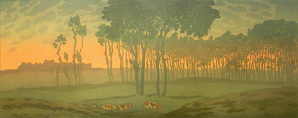 While the Japanese influenced art seems to romanticize locations and to make the locations a garden that the human subjects are merely passing through.