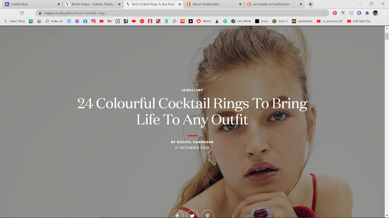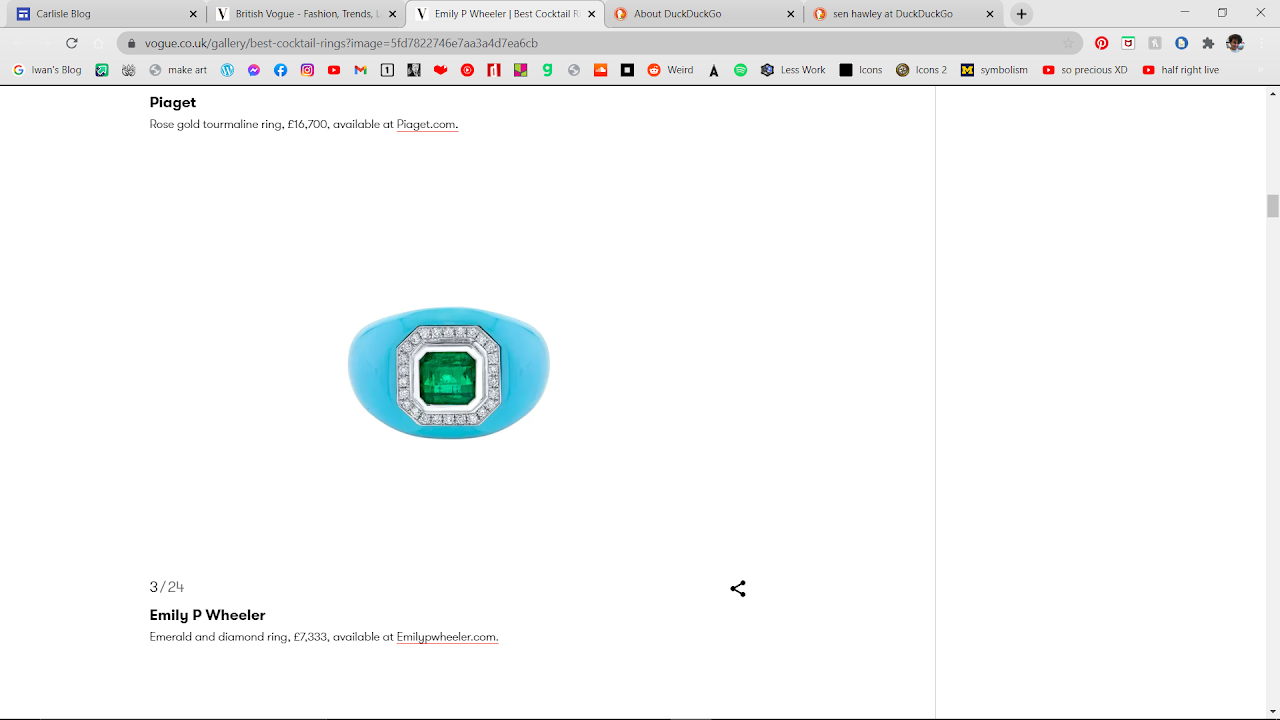 Image:there's one picture of a pretty woman with a ring, then images of rings with their prices. So again we see the tactic of showing a pretty model then the product with hope of lingering association with beauty.