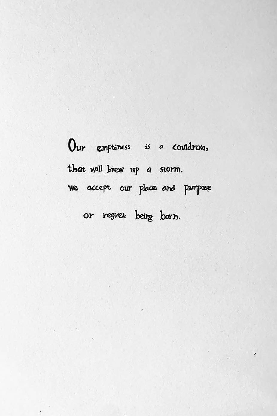 “From our emptiness will brew a storm which shall beg for purpose. Humans are naturally creatures of worship, be it ideology or faith”.
