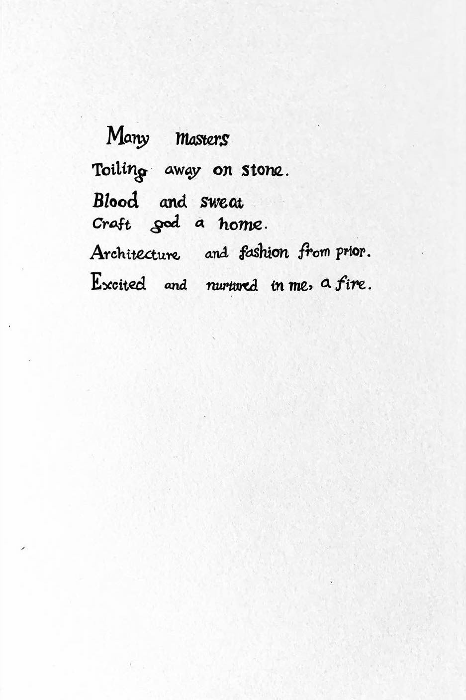 And about how i went obsessed with old architecture like that of cathedrals. I found it really inspiring how generations upon generations would be building something, knowing they themselves would never see it complete. There’s something beautiful about that.
