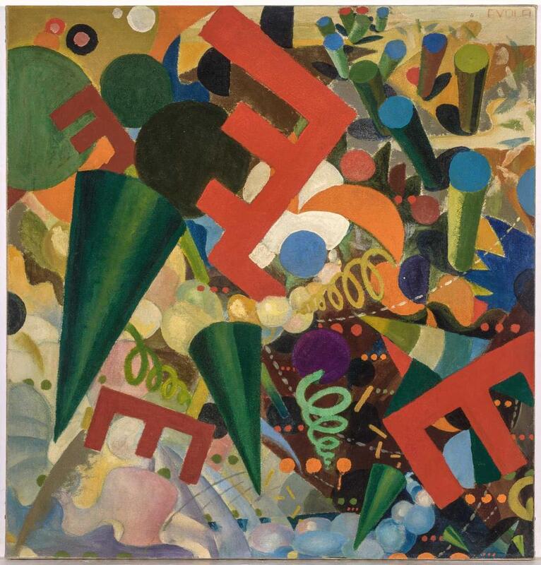 I've gotten interested in the literary work and paintings of Julius Evola, a controversial traditionalist who made cool Art deco, futurist and Dadaist paintings. His paintings are meant to put forth (in my opinion) some ideas which are in his book, such as the idea that the Warrior-Priest alliance class will return to power and restore the Inner greatness of Europe. Him believing that the current liberal order was an alliance of Peasants and Merchants to my understanding. It could juts be a stylistic rendition of modern privative painting. Trying to find something spiritually transcendent. Or perhaps it's an illustration of the chaos and moral mess he perceived the west had become. His ideas have greatly interested me.