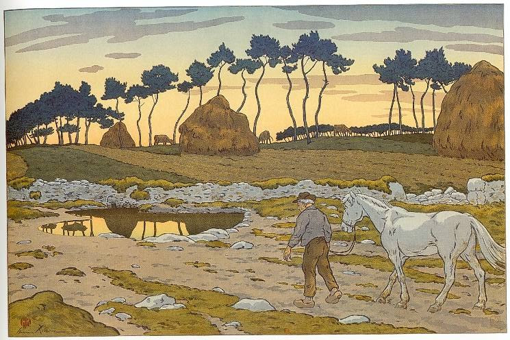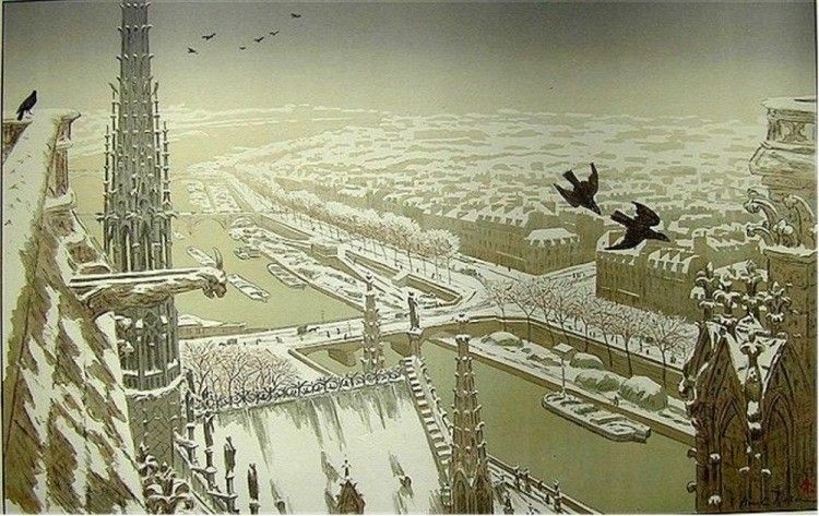 Henri Riviere grew up in the Pyrenees due to his family fleeing the Prussian army. He took an interest growing up in art, especially impressionism in the late 1870s. Then he became interested in Japan and Japanese art. He did shadow play shows at a café called Chat Noir and made a series of paintings called ‘36 views of the Eiffel Tower’ which were inspired by the Painting series ‘36 views of Mount Fuji’. Appearance wise his paintings are clearly borrowing from the style of the Japanese prints with their use of clear black lines and palettes which are lifted straight from other Japanese paintings, such as the greys, whites and black of paintings such as Evening Snow at Kambara by Utagawa Hiroshige. Tone wise it makes Paris seem like a mysterious and beautiful place. At the time Japan was a far away romanticized place that people would see some utopian values in. Turning this style onto Paris leads me to think that he was either trying to tell other people to calm down about Japan and that it was no more unique and beautiful as Europe, or that he instead was trying to specifically highlight the love he felt for Paris and the beauty of the city, and to try to extend that sense of love for Japan onto Paris. After all, this was a time after the Franco-Prussian war where many French people felt embarrassed and demoralized. So it may’ve been something to raise people’s spirits and something to bolster patriotism and national pride.