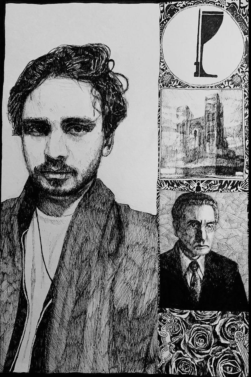 Materialism in the last panel is replaced with a foggy picture of a cathedral. It’s to show my turn towards some form of agnosticism. I’m not sure what i’d properly call myself anymore. I’m far less certain.