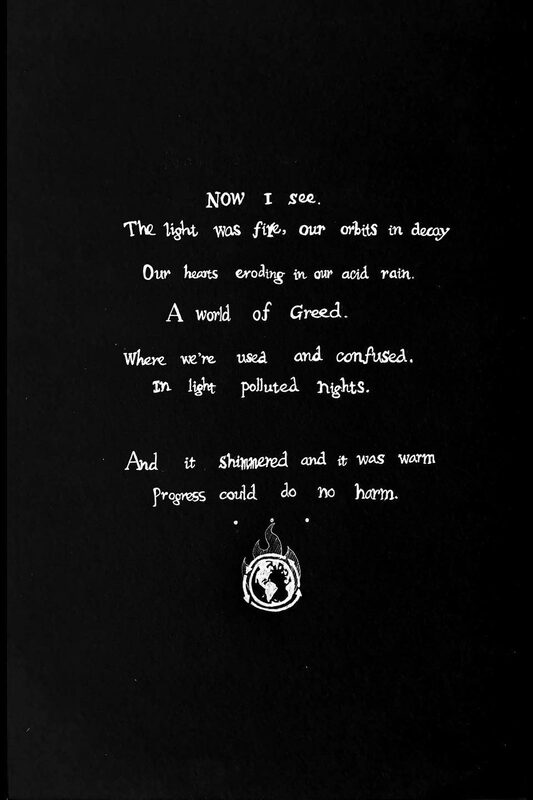 From these influences, for the past year if i saw something which made me lose faith in the world, I would always think, and they begin to say “Ashes”. It almost became a motto.