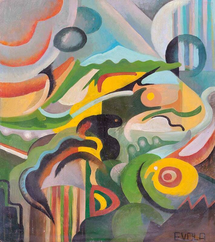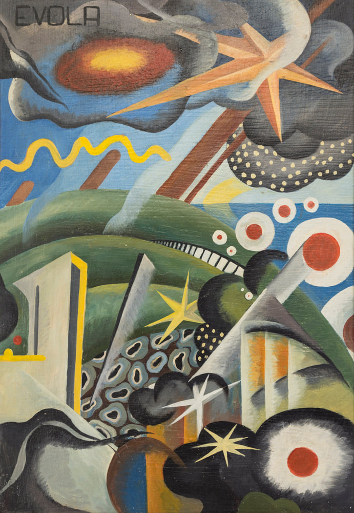 I've gotten interested in the literary work and paintings of Julius Evola, a controversial traditionalist who made cool Art deco, futurist and Dadaist paintings. His paintings are meant to put forth (in my opinion) some ideas which are in his book, such as the idea that the Warrior-Priest alliance class will return to power and restore the Inner greatness of Europe. Him believing that the current liberal order was an alliance of Peasants and Merchants to my understanding. It could juts be a stylistic rendition of modern privative painting. Trying to find something spiritually transcendent. Or perhaps it's an illustration of the chaos and moral mess he perceived the west had become. His ideas have greatly interested me.